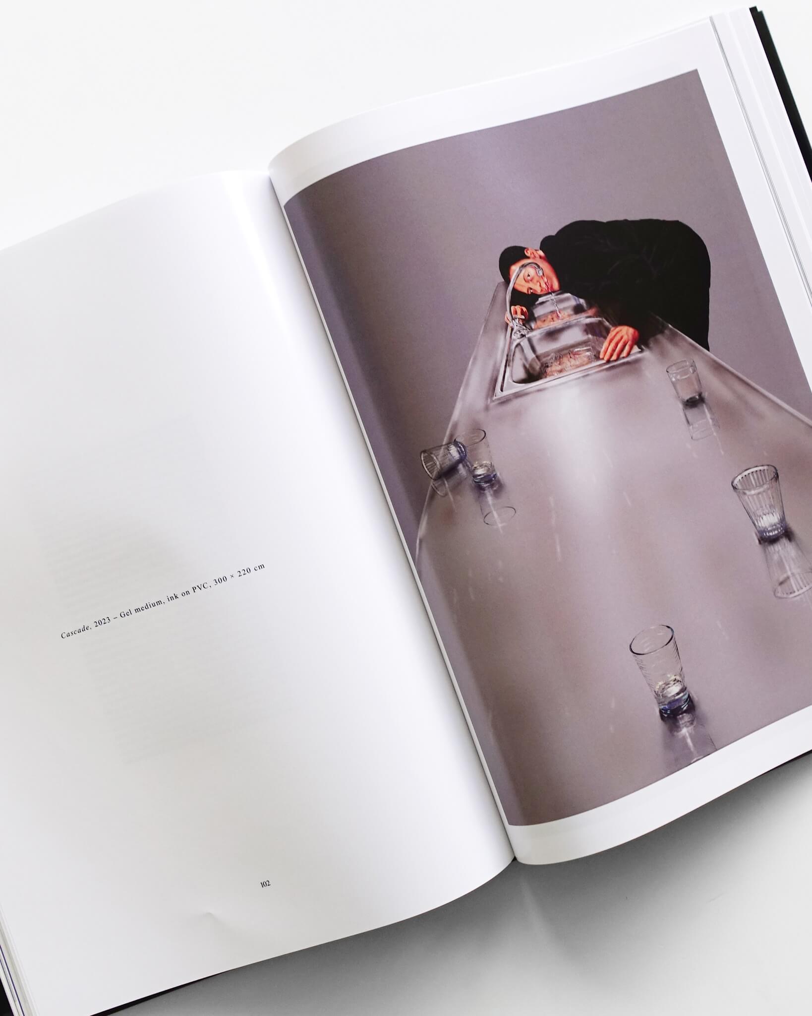部屋、緑色で閉鎖的な空間と窓、しかし外につながっているかはわからない。あるいは曇った空、動物。野外でさえどこにも辿り着けない隔絶。本書は、シュルレアリスム、マジックリアリズム的絵画を描く画家、Louisa Gagliardiによる、スイスのMASI Luganoで開催された展覧会に際して発行された作品集。彼女はPCのなかでマウスを絵筆として絵画を作成したのち、ビニールに印刷してフレームに張り、絵の具を塗り重ねていく。滑らかで不明瞭な筆触は、かつてのエアブラシがデジタルツールへと置き換えられた、狂いのない擬似的な「ペイント」である。